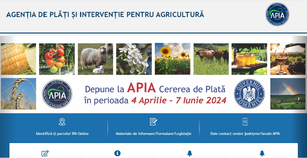 Agenţia de Plăţi şi Intervenţie pentru Agricultură (APIA) informează că în perioada 4 aprilie – 7 iunie 2024, la Centrele APIA, se vor depune Cererile de plată pentru intervenţiile aferente sectoarelor vegetal şi zootehnic în anul 2024.