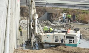 După cum puteți vedea din imaginile și filmările care însoțesc prezentul articol, realizate pe date de 9 martie 2024, constructorul – ASOCIEREA WEBUILD SPA – IHI INFRASTRUCTURE SYSTEMS LTD – a început deja să foreze la piciorul pilonului viaductului prin care se face urcarea pe Pod dinspre DN 2B, pentru a încerca stoparea acestor tasări.