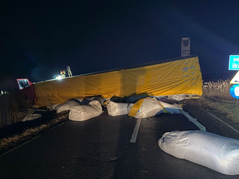 Accident rutier la Grădiștea: Un tir s-a răsturnat și a blocat traficul pe ambele sensuri