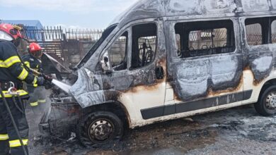 Microbuz cuprins de flăcări în plină zi, pe strada Industria Sârmei din Brăila