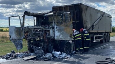 Camion în flăcări pe DN 23! Trafic blocat complet între Muchea și Brăila
