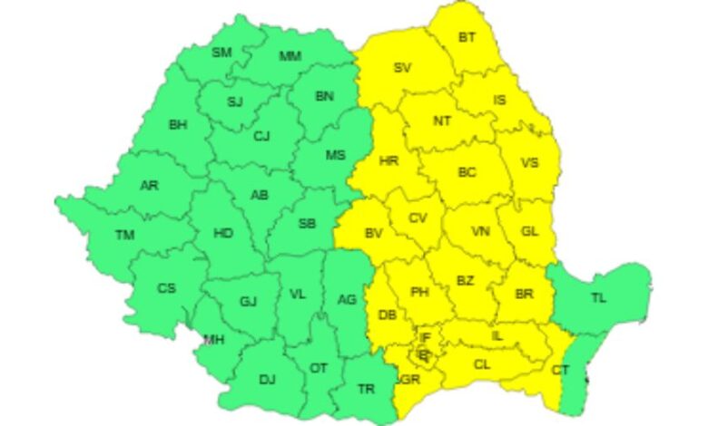 Administrația Națională de Meteorologie a emis o atenționare de cod galben de instabilitate atmosferică temporar accentuată, valabilă joi, 22 mai, în intervalul 12:00 – 23:00.