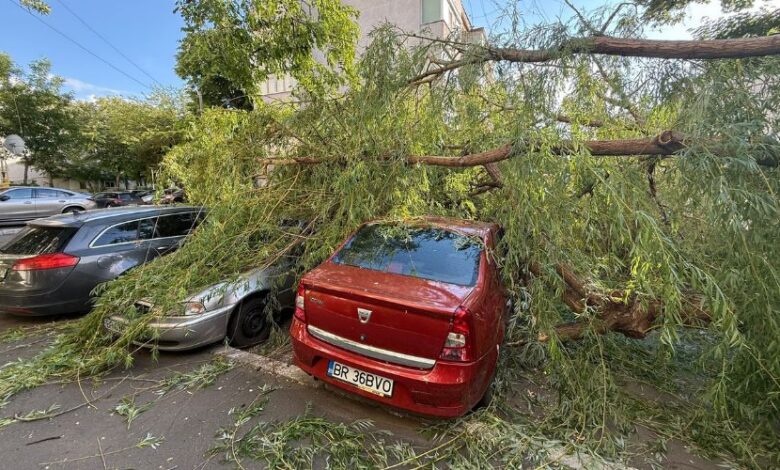 Dezastru în Brăila! Furtuna a pus orașul la pământ: mașini distruse și o femeie rănită de un copac prăbușit