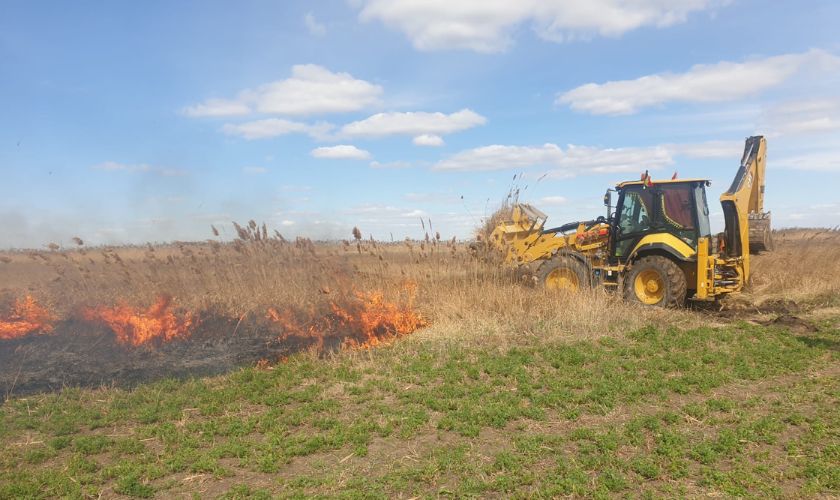 Pentru a opri extinderea incendiului, pompierii au creat fășii izolatoare din brazde de pământ, însă vântul puternic a îngreunat intervenția. Incendiul a mistuit deja aproximativ 20 de hectare de vegetație uscată și stuf, fiind alimentat constant de rafale puternice de vânt.