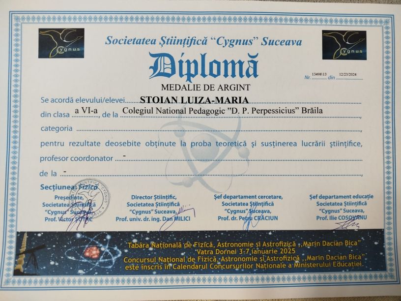 Tabăra Națională de Fizică, Astronomie și Astrofizică „Marin Dacian Bica”, desfășurată în perioada 3-7 ianuarie 2025, în stațiunea Vatra Dornei, a adus rezultate bune pentru elevii brăileni.